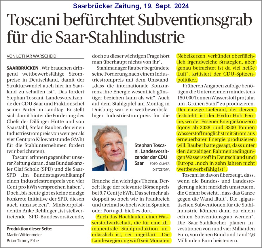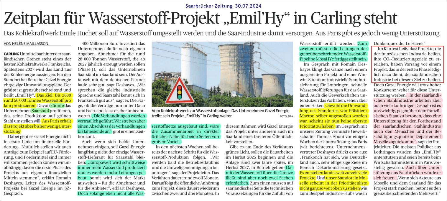 grünen Wasserstoff ins Saarland.